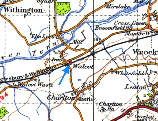 Notes: Walcot station was situated on the Shrewsbury & Wellington Railway (S&W), a joint line of 10 miles that was authorised on 3 August 1846. The S&W partners were the Shrewsbury & Birmingham Railway (S&B) and the Shropshire Union Railways & Canal Company (SUR&CC). For the S&B the joint line provided a link to Shrewsbury for its Wolverhampton line and for the SUR&CC for its Stafford line. The S&W opened on 1 June 1849 as did the SUC&RC Stafford and Wellington line which was immediately leased to the London & North Western Railway (LNWR). The S&B opened from Wellington to Oakengates at the same time but it did not reach Wolverhampton until 12 November 1849.