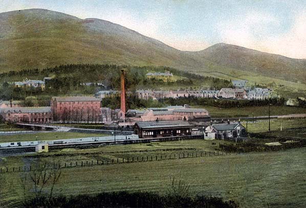 Initially a market town, Peebles played a role in the woollen industry of the Scottish Borders until the 1960s. Today only one woollen mill remains operational in the town. In the mid-to-late 19th century the town became a popular tourist destination centred on hydropathic establishments as Peebles developed into a popular spa resort. Peebles lies at the confluence of the River Tweed and Eddleston Water. The Tweed flows eastwards, and the Eddleston flows from the north, turning to flow south-west 300 yd before the confluence.