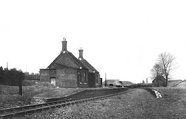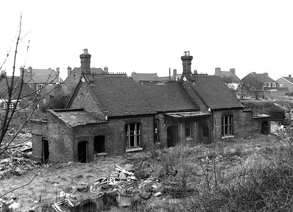 Approached by a driveway that connected to Coppice Road the station building was quite different from its neighbour at Brownhills. It was a rambling single-storey three-cell structure built of brick with a tall pitched roof, the central cell curiously having a lower pitch than its neighbours. Door and window openings had shallow segmental arches, and a modest awning sheltered the |