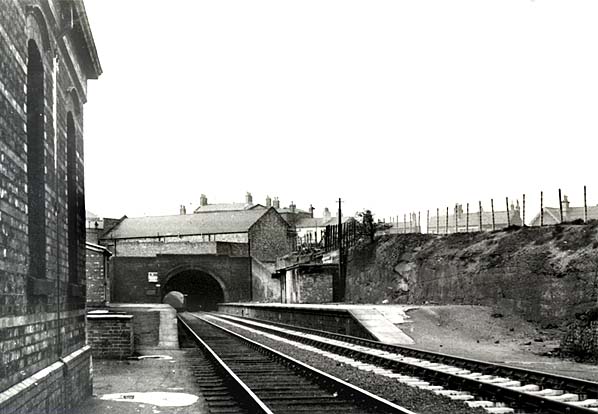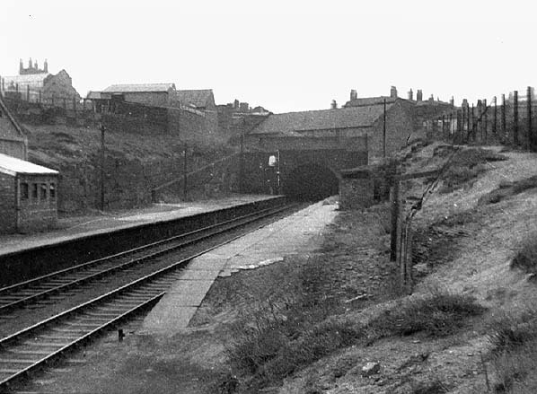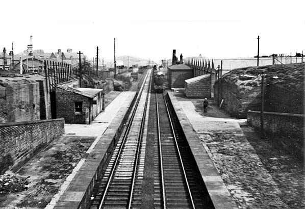 ![]() Walton-on-the-Hill station looking north-east in 1950 as a goods train for Huskisson approaches.