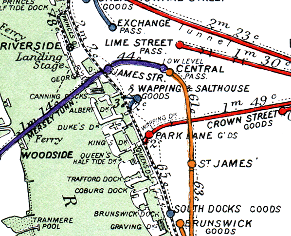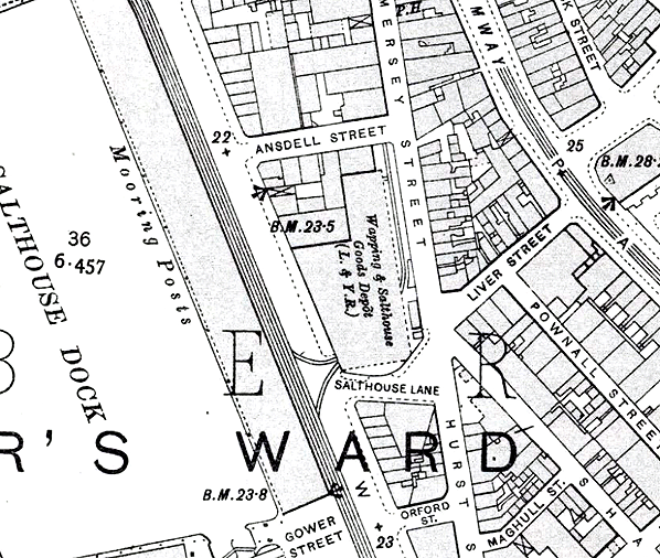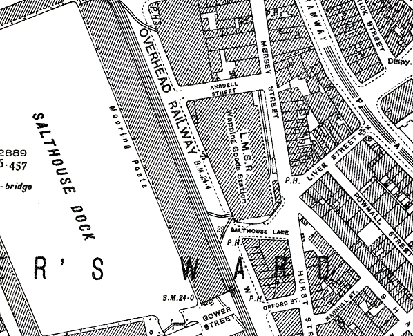 Notes: The Lancashire & Yorkshire Railway (LYR) opened their Wapping & Salthouse Goods station in 1902. The station served the Albert, Salthouse and Wapping Docks and it was located close to the city centre, on the east side of Wapping which ran parallel to the river to the east of the dock estate. The station was located close to Salthouse Dock which had opened in 1753.