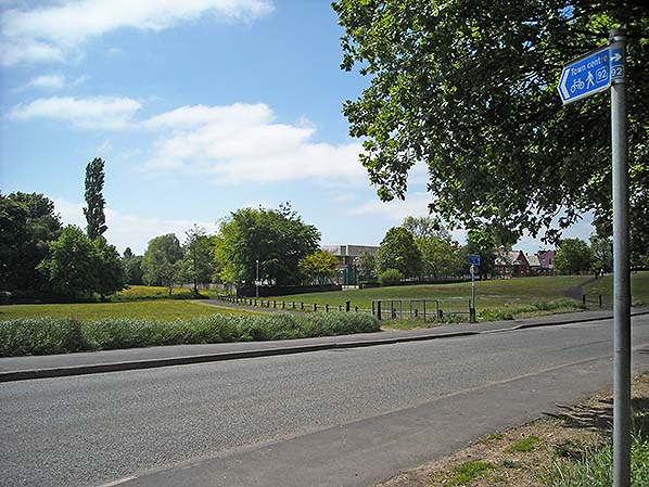 ![]() Looking south across Fieldhouse Road in June 2016. The road formerly crossed over the Facit Branch by a bridge, and photographs by Richard Greenwood in 1963 (reproduced again below) looking south from the bridge show trains in Cronkleyshaw Cutting, with Greenbank Primary School in the background. Today the scene is very different as the cutting has been filled in: it is the field ahead, ablaze with flowering buttercups. The school, distant and to the right, is a useful landmark for comparison of the 1963 and 2016 views. Photo by Alan Young Photo by Richard Greenwood