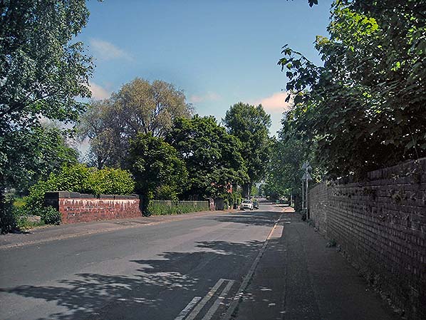 ![]() Looking north-east along Taylor Street in June 2016. The red-brick, stone-capped parapet on the left is of the bridge by which the road crossed the Facit Branch; this is the point where the double track was joined by a siding. The more distant brick parapet, beyond the iron railings, was of a bridge over the northern throat of the sidings on the up side of the Facit Branch. Taylor Street marks the southern end of an ‘off road’ footpath along the Facit Branch which stretches almost to Shawclough & Healey station. Further sections of the trackbed between Shawclough and Whitworth and between Facit and Bacup are also recreational paths. Photo by Alan Young