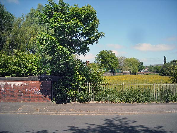 ![]() Looking north from the former Taylor Street road bridge in June 2016. Part of the bridge parapet is in the foreground, and the ‘buttercup meadow’ beyond is the infilled railway cutting which stretches to Fieldhouse Road. The railway from Rochdale to Bacup (the Facit Branch) was double-track at this point, and the line that gave access to the six sidings on the up side of the Facit Branch ran parallel to the ‘through line’ within the cutting. Photo by Alan Young