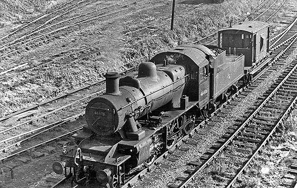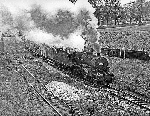 Photo by Ian G Holt ![]() On 30 April 1963, looking south from Fieldhouse Road bridge, a weedkilling train is hauled by No. 42750 through Cronkleyshaw cutting between Wardleworth and Shawclough & Healey stations. The loco is a Hughes-designed ‘Crab’ 2-6-0 built in June 1927 at the LMS Crewe works. In August 1963 she was withdrawn from 39A, Gorton shed, to be cut up at Wards, Broughton Lane, Sheffield, in May 1964.