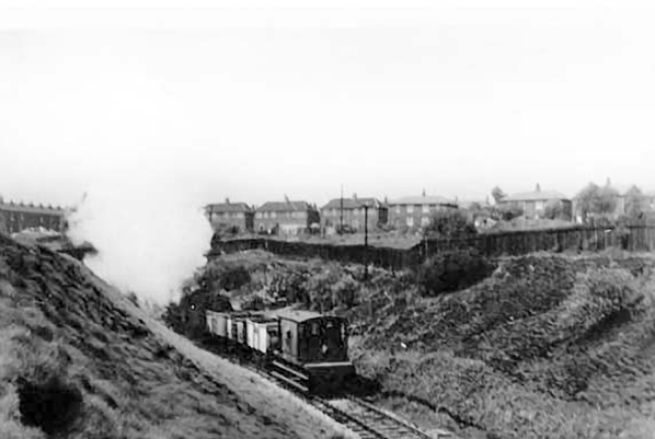 Photo by Richard S Greenwood ![]() A goods train from Wardleworth is seen north of the station, near Gale Street, in this undated view