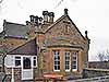 ![]() The road frontage of Warkworth station, looking north-west in April 2005. The coal depot used to be in the foreground, and the single-storey building with the wide metal door was formerly of two storeys and is thought to have been associated with the coal depot. The main station building stands beyond.