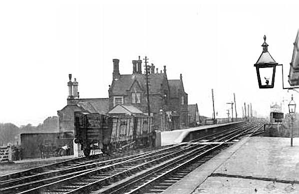 ![]() Station Name: WARKWORTH![]() Warkworth station, looking south from the down platform c1905. In the foreground an oil lantern is fixed to the waiting shelter. The up platform is staggered southwards and the principal station building adjoins it. In the distance the signal box can be seen on the up side; this replaced one on the opposite side of the tracks.