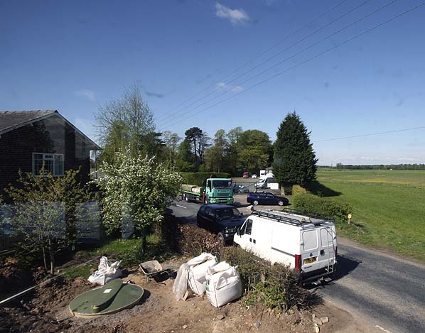The site of Warthill level crossing looking west from the signal box (looking west) in May 2010. The first lifting barriers anywhere in the country were installed here in 1952. The crossing-keeper's house is seen on the left.