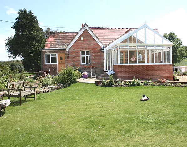 Watchingwell Station in June 2005 - the side of the station building (platform is on the left) with a new extension on the right. Photo by Nick Catford