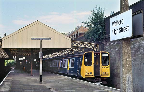 A Euston train waits at Watford High Street station in June 1986.