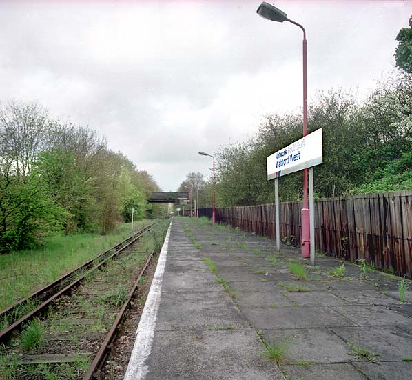 Watford West station looking west towards Croxley Green in April 1998, two years after the service was suspended.