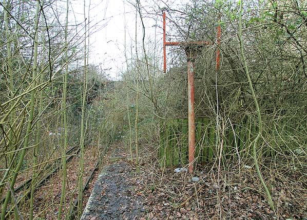 Watford West station looking west from the end of the platform in February 2013. The stand that once held the driver's mirror is seen.