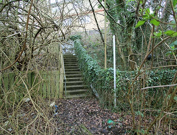 Watford West station exit stairs at the back of the platform in February 2013.