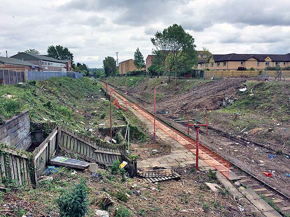 Watford West station looking east from Tolpits Lane bridge in May 2014.