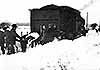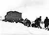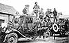 ![]() Photo from John Mann collection ![]() The last passenger train - (left to right) Stanley Clarke (Station Master) watches Bernard Warren (Signalman) exchanging single line tokens with the train driver, David Grant.