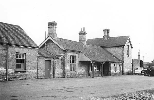 ![]() The attractive array of buildings seen from the station forecourt in March 1962. The two-storey building is the station master's house with single storey offices and waiting rooms alongside. An overhanging roof provides weather protection for passengers arriving or departing by road.