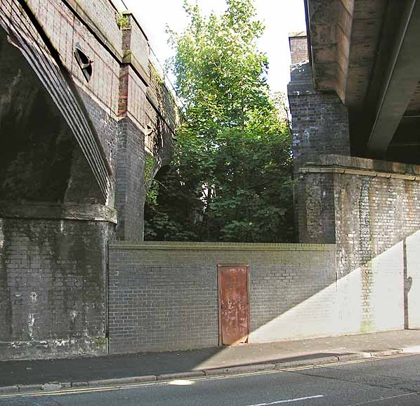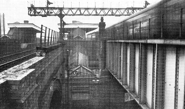 the station was accessed from between the two bridges that supported