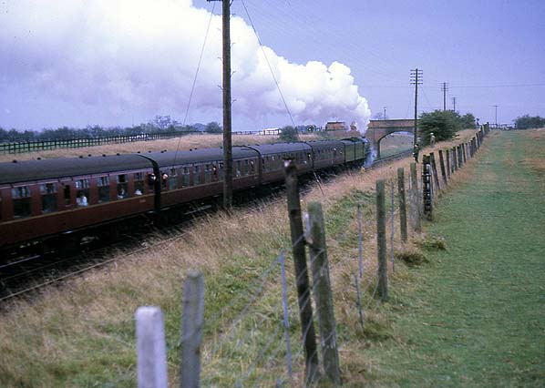![]() The Flying Scotsman heading south in 1967 having just passed through the site Weelsby Road Halt. Peaks Tunnel (a road bridge over Peaks Lane) is shown.