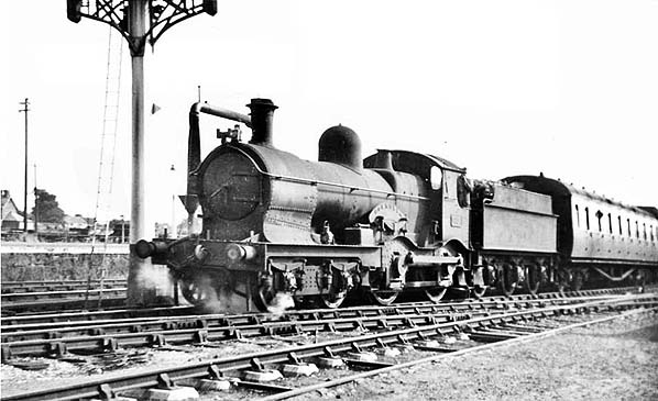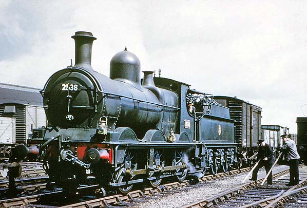 ![]() In the mid-1950s ex-GWR 0-6-0 Dean Goods locomotive number 2538 is seen on shunting duties at Welshpool station. The locomotive had entered service with the GWR in August 1897. It spent the period between 8 August 1953 and May 1957 when it was withdrawn at Oswestry locomotive shed.