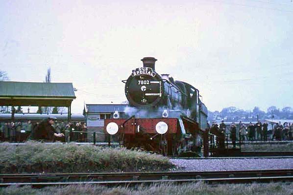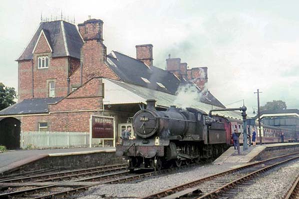 Photo from John Mann collection ![]() Photo from John Mann collection ![]() The Welshpool station forecourt and building seen looking east in the 1960s. Copyright photo from the John Alsopcollection ![]() An express service for the coast is seen taking on water at Welshpool in the 1960s. Photo from the Alan Young collection ![]() Ex-GWR 4-6-0 Manor Class locomotive number 7802 Bradley Manor which had been working an SLS special is seen being turned at Welshpool on 17 January 1965. The locomotive was withdrawn from service from Shrewsbury shed in November 1965. ![]() Photo by Ian Nolan ![]() Photo by Ian Nolan ![]() Welshpool station looking north on 21 August 1965. Copyright photo from the Mike Morant collection ![]()