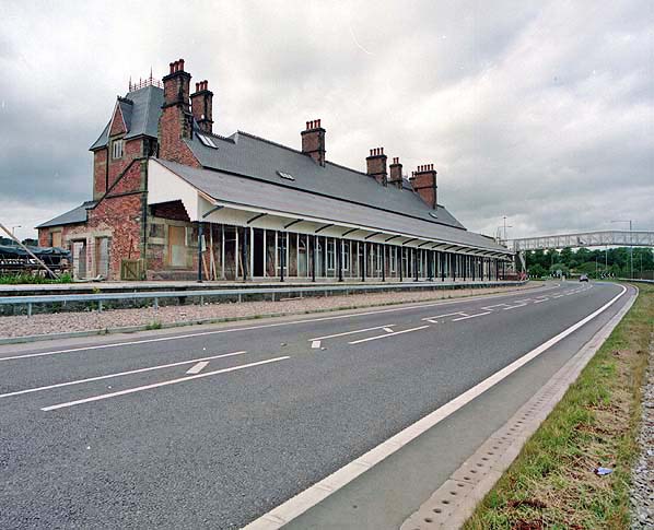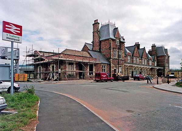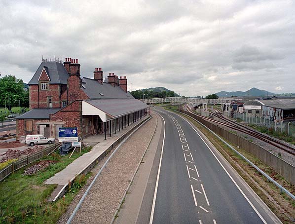 ![]() After the first Welshpool station had closed it was refurbished and converted into a retail outlet. It is seen in this view from July 1995 during the period when it was being converted.