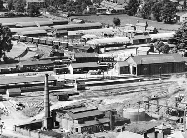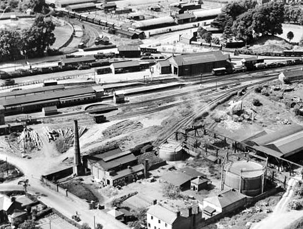 Reproduced with the kind permission of Simmons Aerofilms Ltd ![]() Reproduced with the kind permission of Simmons Aerofilms Ltd ![]() The north end of Welshpool station and the goods facilities seen in 1939. The cattle market can be seen towards the top of the view and the gasworks at the bottom. Reproduced with the kind permission of Simmons Aerofilms Ltd ![]() A view of the north end of Welshpool station in 1939 showing the goods facilities and at the bottom of the photograph the gas works.