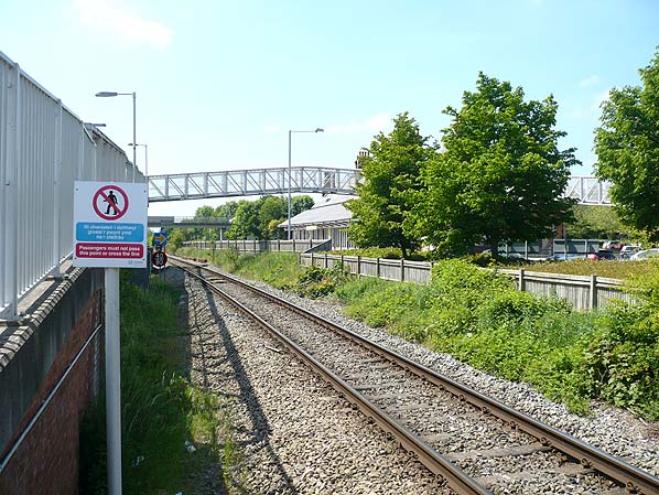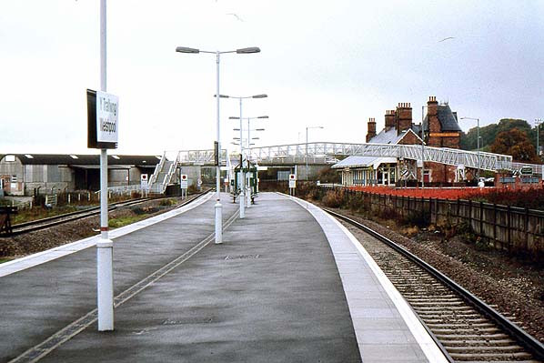 ![]() The second Welshpool station looking south-west on 2 November 1996. The original station can be seen in the distance to the right.