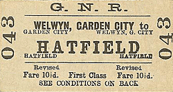 The Luton, Dunstable & Welwyn Junction Railway Act was passed on the 16th July 1855 authorising a junction with the LNWR at Dunstable and a triangular junction with the GNR at Digswell together with a bridge over the GNR to allow through running over the H & WJR between Hertford and Dunstable. All three companies were authorised to work the line. A single track was built (with the intention of doubling in the future) with construction starting on 16th October 1855 which, in Luton, was designated as a half-day public holiday as residents had waited so long to get a railway! Unfortunately the company was unable to raise sufficient capital to purchase all the necessary land between Welwyn and Luton. The LNWR refused to help by leasing the line although they did offer to work the line for two years after completion. In an attempt to save the line an amalgamation between the H & WJR and the LD & WJR was proposed. This was bitterly opposed by a minority of disgruntled Luton shareholders who claimed that passengers would be forced to travel to London via the Eastern Counties main line at Hertford rather than using the shorter GNR route via Hatfield. The amalgamation and formation of the Hertford Luton & Dunstable Railway was passed at a heated meeting on 26th January 1858, but although both lines were completed and approach embankments were constructed, the linking bridge was never built due to restrictions imposed by the GNR. The Hertford line was opened to passenger traffic on 1st March 1858 between Hertford (Cowbridge) and a short-lived station at Welwyn Junction on the GNR.Work on the Luton line had been progressing during the amalgamation negotiations, and at a shareholders’ meeting on 6th August 1857 it was announced that the first section of the line between Luton and Dunstable was ready for goods traffic. Several goods wagons were fitted with seats to take shareholders along the line. The line was initially inspected on 18th March 1858 and, after a turntable was provided at Leighton at the request of the Board of Trade inspector, the line was passed a month later, with a goods service running from 5th April 1858 and a passenger service from 3rd May 1858; large crowds travelled to Luton station for a day to take part in the celebrations and ride on the new line. Initially there were five trains in each direction on weekdays only; two of these were later extended to Leighton. At this time Luton trains used a new station in Church Street, Dunstable, with through trains to Leighton bypassing the LNWR station which was at a lower level. Initially an end-on connection had been proposed which would have required raising the level of the road by three feet to provide a level crossing. This was rejected by Parliament, so a diversion was authorised in 1856 taking the new line over Watling Street, rejoining the Leighton line to the west of Dunstable station. A proposed new station at the junction was not built at that time, although through trains from Luton could back into the LNWR station if required. April 1860 the HL & DR informed both the Eastern Counties Railway and the GNR that they were ending the 1858 agreement. The GNR immediately took steps to take over the line because of its strategic importance as a link between the three main lines; a Parliamentary Bill was prepared to facilitate this. At this time the line was nearing completion, with a special train carrying LNWR officials on 12th June and another 'special' on 17th July for company shareholders. After passing its Board of Trade inspection, the line between Luton and the Great Northern was opened to both goods and passenger traffic on 1st September 1860 with intermediate stations at New Mill End, Harpenden and Wheathampstead. At this time a Sunday service was introduced for the first time.There was a junction with the GNR at Welwyn, but no station was provided, and the H & WJR station at Welwyn Junction was closed with trains on both lines terminating at Hatfield. In 1864 there were six daily down trains between Hatfield and Leighton, with five up trains. There were a further two down trains between Luton and Leighton in the early morning with two up trains in the afternoon and evening and one train in each direction between Hatfield and Dunstable. On Sundays there were two down trains between Hatfield and Dunstable, with one up train with two short-running services. The Hertford, Luton & Dunstable Railway was absorbed by the GNR under the Great Northern Railway Act of 12th June 1861. This gave the GNR exclusive rights to operate the line, although a clause in the Act gave the LNWR joint rights to use the section between Dunstable and Luton. In December 1868 new parallel lines into Hatfield were brought into use for the branch services, and the earlier junctions were removed in January 1869. Although built as single track throughout, it was always the intention that the line would be doubled, and sufficient land was acquired over some of the route. In the late 1890s the Great Northern line between Digswell and Hatfield was widened with a new track being provided for Dunstable trains, and the old Dunstable line becoming the new down slow main line In 1890 passenger numbers were sufficiently high for doubling the line between Luton and Dunstable. This was authorised by Parliament in 1891, but progress was slow and it did not open until 10th September 1899. Proposals to double the remainder of the line brought a lukewarm response from the GNR. Passenger numbers increased through the 1890s, and by 1900 there were nine trains in each direction between Luton and Dunstable, with eight in each direction between Luton and Dunstable and seven between Dunstable and Leighton.In 1920 the new town of Welwyn Garden City was founded by Sir Ebenezer Howard, following his previous experiment in Letchworth Garden City. Howard had called for the creation of planned towns that were to combine the benefits of the city and the countryside and to avoid 