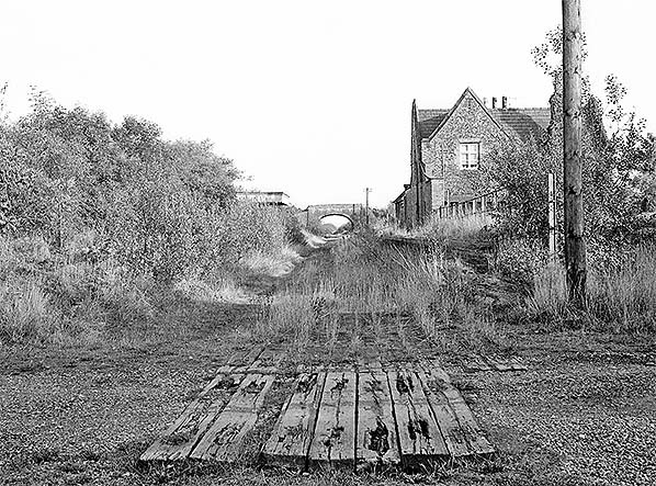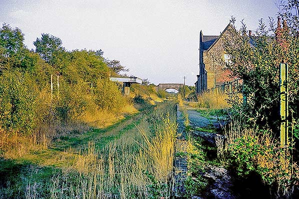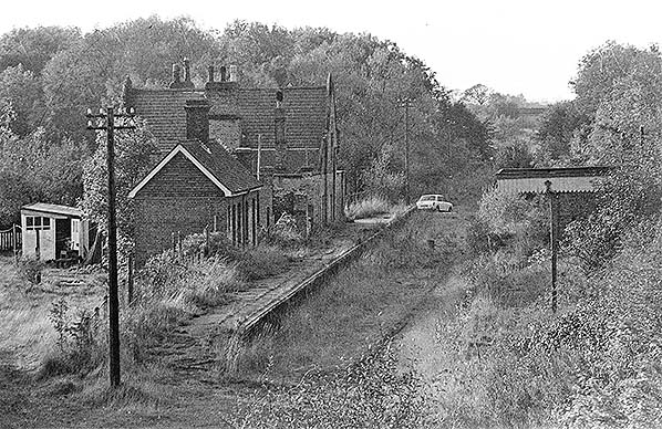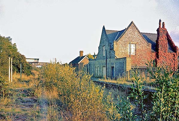 ![]() Wendling station looking west from the road bridge in October 1975. The station master's house was never used as a private residence after closure as the station was earmarked for a new road and was demolished a few months after this photo was taken.
