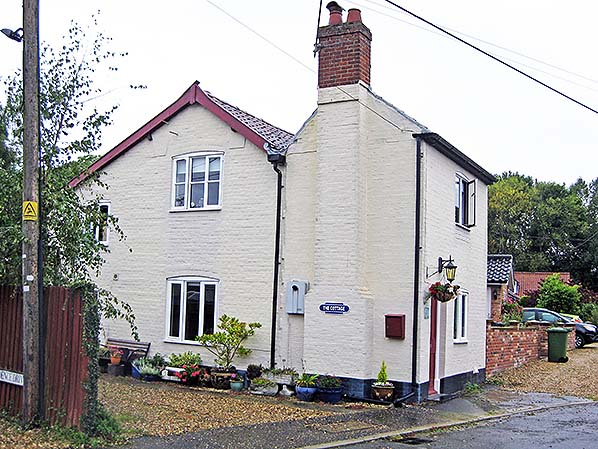 is the only older building remaining on the approach road to where Wendling station once was. It has a mock-BR totem name-board. September 2017.