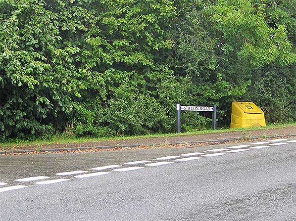 has been relocated and realigned so as to cross the new bridge over the A47. The station approach road is on the left of the picture. September 2017.