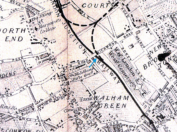 Notes: West Brompton was a later addition, opening on 1st September 1866 following requests from local residents. Prior to opening the station was known as Brompton Road and then Richmond Road. At the same time the Metropolitan District Railway were planning to extend their line from Earls Court to an adjacent site on land owned by the WLER. There was disagreement between the two companies about who should design the station after the WLER board submitted their own plans for both stations.