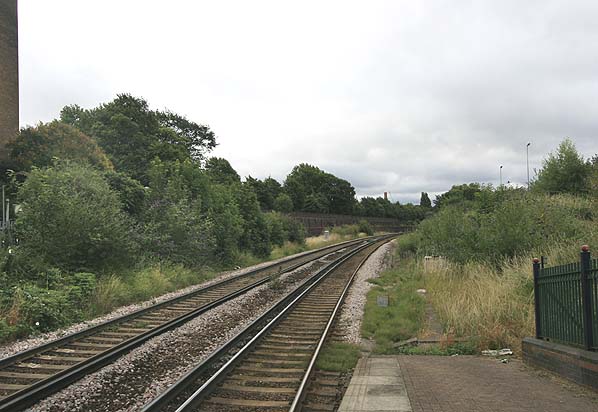 Looking south from West Brompton Station in July 2009, the original platforms were longer.
