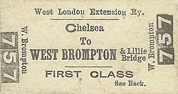 ![]() Station Name: WEST BROMPTON![]() West Brompton District Line station looking south in the early 1960's. The disused WLER platforms are seen to the right and to their right the Brompton & Fulham Goods and Coal Depot.