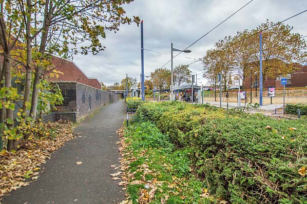 Protection of the railway alignment was the idea behind establishing the linear park to occupy the site of the atation for several years before the construction of Phase 1 of the Midland Metro line commenced.
