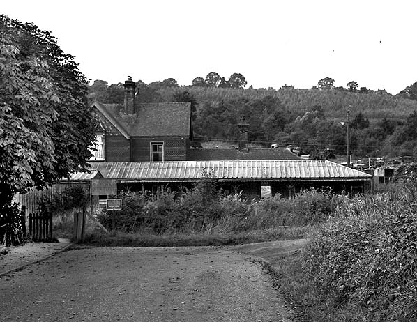 West Hoathly station seen from the end of Hamsey Road in September 1961. A path at the end of the road on the left leads onto the down platform by the footbridge.