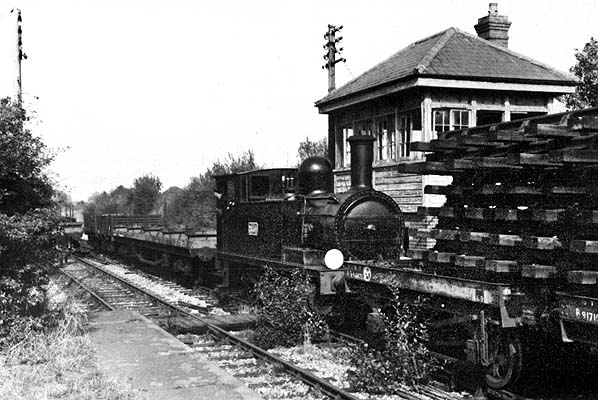 Track-lifting is underway at West Hoathly station in January 1965.The locomotive is an ex-North London Railway Class 75 tank engine that was withdrawn from Rowsley Shed in December 1960. It was stored at Barrow Hill for two years before coming to the Bluebell in 1962. In 1964 it was hired by the demolition contractors for lifting the track between Ardingly and East Grinstead. It was later used for rebuilding the same line when the Bluebell's northern extension was under construction.