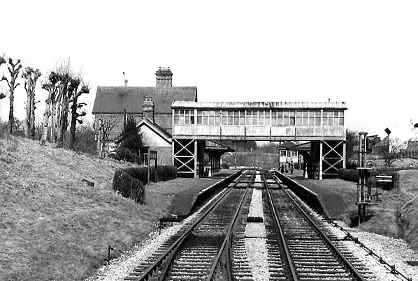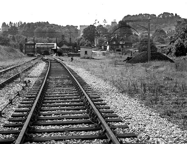 ![]() Station Name:WEST HOATHLY[Source: Nick Catford] ![]() Looking north towards West Hoathly station in 1958. Sharpthorne Tunnel is behind the photographer.