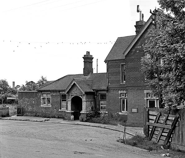 Photo by Ian D. Nolan from his Flickr photostream ![]() West Hoathly station building seen from the end of Station Road in August 1962. Although the booking office windows are boarded up, the house was still occupied at this time. The post box is still on the wall to the left of the porch, presumably still in use.
