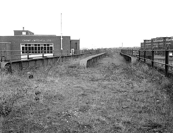 Freight traffic continued on the Blackwall route and Millwall Junction Station remained open for freight traffic until 14th November 1927. The line remained in use for freight particularly via Limehouse curve with many trains carrying Elder & Fyfe banana traffic from their facility on the south side of the East India Docks. The first section of track to be lifted was at the Blackwall end where the station was demolished in 1946 to make way for Brunswick power station. The last train between Stepney Junction and Limehouse was an enthusiasts special on 14th April 1951. After that date the points at the west end were disconnected with access to the Blackwall line remaining via the Limehouse Curve. The curve was abandoned on 10th May 1963 leaving the only access via the North London line at Poplar. This remained in use until at least 1976 but by the early 1980's all the track had been lifted.