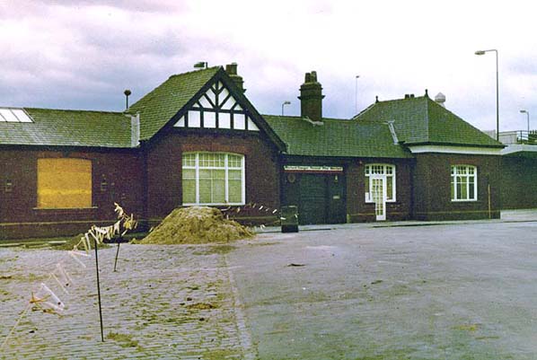 ![]() The exterior of the main station building at West Jesmond, looking west in September 1977. Its lengthy single-storey frontage has similarities to NER architect William Bell’s earlier Tynemouth (1882) and later Monkseaton (1915) though it is on a more modest scale. Photo by Alan Lewis from his Flickr photostream