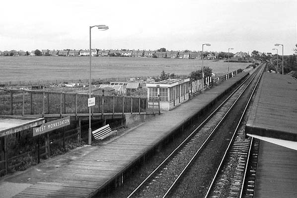The down platform at West Monkseaton c1973. The BR(NE) running-in board is still in place, and corporate identity name signs have been fixed to the lamps.
