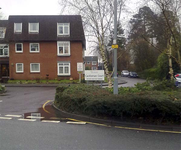 Looking east across the site of the level crossing at the site of West Moors station in December 2009.