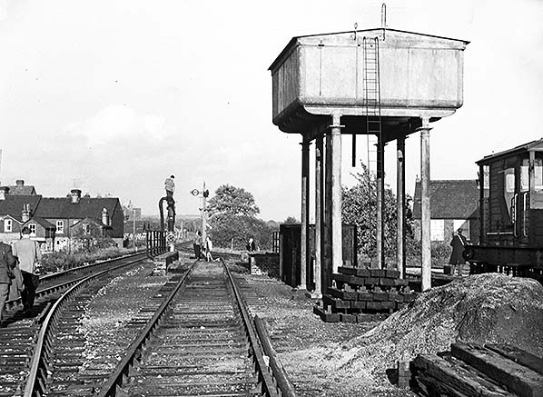 Photo by Ian Nolan from his Flickr photostream ![]() Directly ahead in this view taken on the last day is the water crane and, in front of it, site of the one-time engine shed while we are afforded a good view of the water tower alongside the shed road. On the far left is the running line and points at the east end of the run-round loop. The houses in Railway Terrace are seen on the right. Photo by Ian Nolan from his Flickr photostream Click here for Westerham Station Gallery 9: