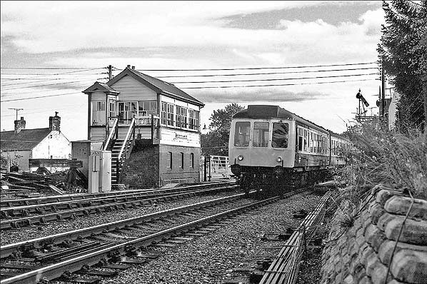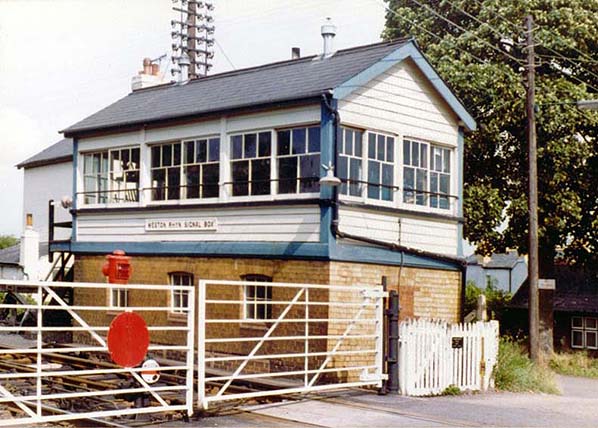 Weston Rhyn signal box closed on 3 August 1991 when the absolute block was extended to run from between Croes Newydd North Fork and Gobowen North signal boxes. After the signal box closed the level crossing was controlled by a temporary crossing keeper who was withdrawn on 9 October 1991 when the level crossing was converted to automatic half-barrier operation supervised by Gobowen North signal box.