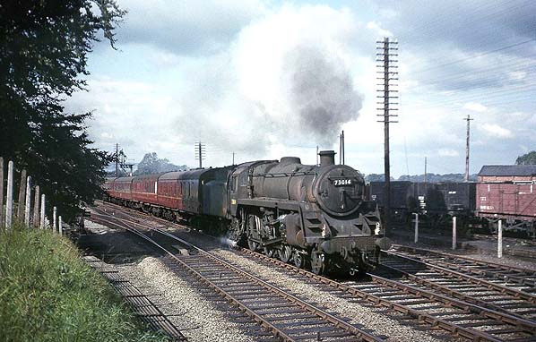 ![]() Looking north away from Weston Rhyn signal box on 1 September 1965. To the right of the southbound train are the Ifton Colliery exchange sidings.
