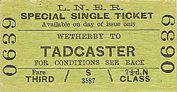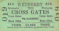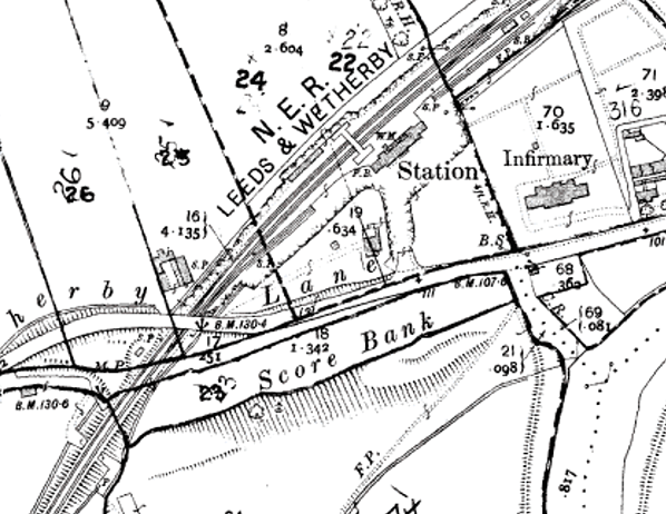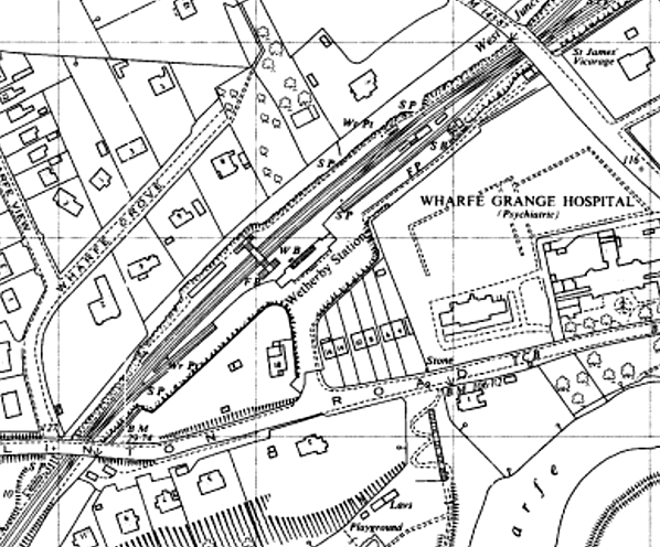 Notes: With the opening of the line from Leeds (Crossgates) to the Church Fenton - Harrogate line on 1 May 1876 trains travelling between Leeds and Harrogate were unable to call at Wetherby as the new line joined the existing one a little to the west of Wetherby station, which was sited to the east of the town on York Road. Leeds to Harrogate soon became the primary route, so a new Wetherby station was built to the south of the town on the new line at Linton Road. This opened on 1 July 1902, with the original station on York Road being retained as a goods station. The new Wetherby station also handled some goods traffic