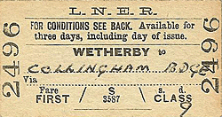 In 1902 the Great Northern Railway started running express services from Kings Cross to Harrogate via the Church Fenton to Harrogate line, with three daily trains in each direction. These continued after the grouping in 1923 and included the prestigious 'Harrogate Pullman'. Although the Cross Gates to Harrogate line was always considered the major route, the August 1906 timetable shows a good service on both lines with a mixture of stopping and express services. Express trains from London over the Church Fenton - Wetherby line had stopped running by 1947.