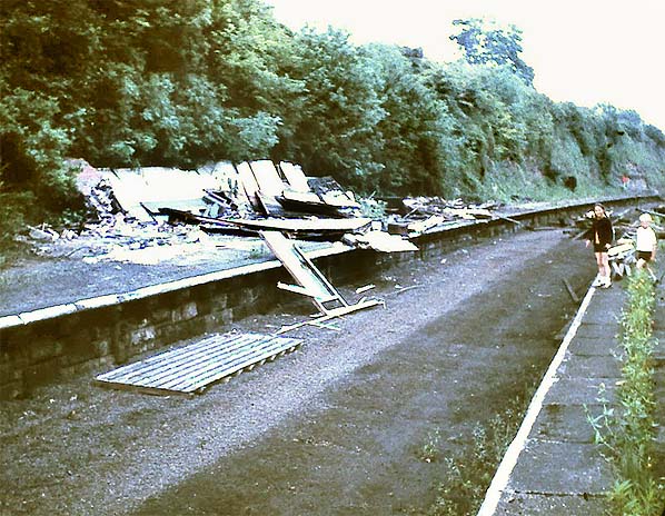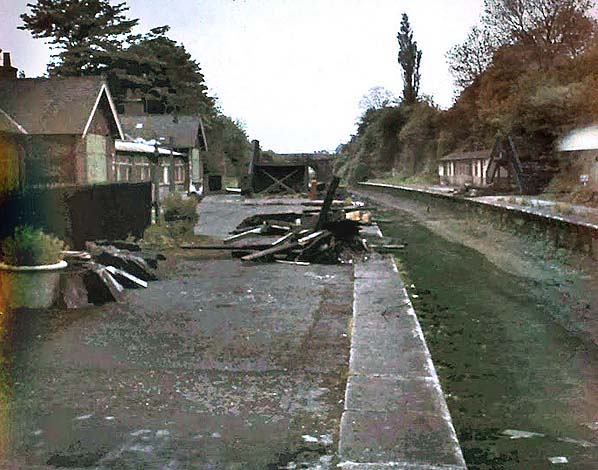 After closure the station site was briefly used as a car park for a nearby Italian restaurant (‘La Locanda’, since demolished and moved to Collingham). However, the remote and hidden nature of the site made people reluctant to leave their cars. The track was filled in up to platform level in the early 1970s but the main station building lingered a little longer, increasingly derelict and vandalised. In 1971 it was used as a film set in one episode of the children’s TV series Follyfoot. Part of the station building still survived in 1977 but had gone by the end of the decade.